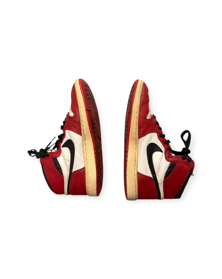 The original 1985 Jordan 1. Replacement box and spare laces included. This item has been repainted by a specialist so it can be put on display. Ebay verified for authenticity.
